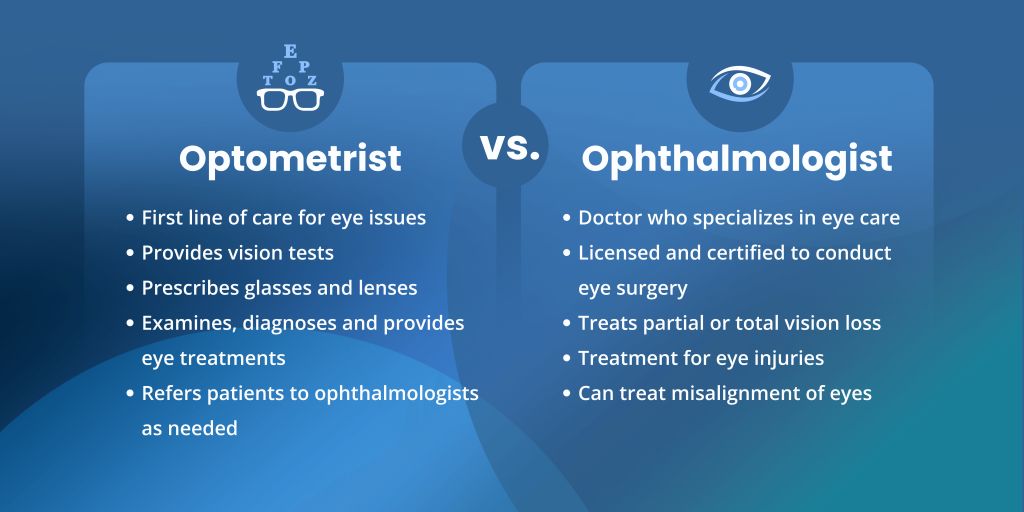 Optometrists focus on primary care and non-surgical treatments, earning a Doctor of Optometry (OD) degree after four years of optometry school. Ophthalmologists, however, are physicians who complete medical school and a residency, enabling them to perform surgery and treat advanced eye diseases.